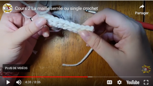 Le deuxième cours est là. Voici comment faire la maille serrée (ms) ou en anglais le single crochet (sc). Bon visionnement !